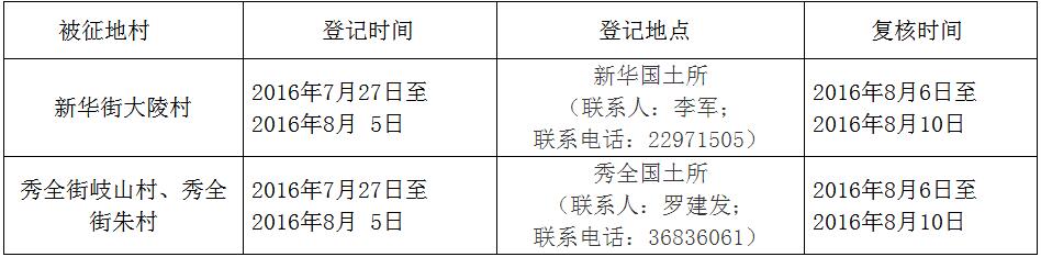 五、被征收土地四至范圍內的土地所有權人、使用權人在本公告規定的期限內,持土地權屬證書或其他有關證明材料,到指定的地點辦理征地補償登記,請互相轉告。