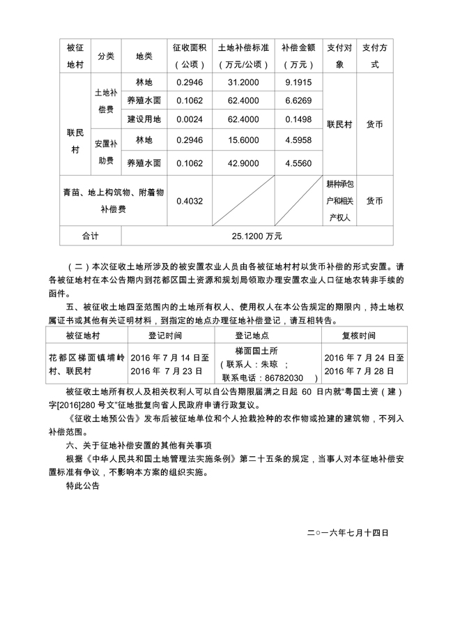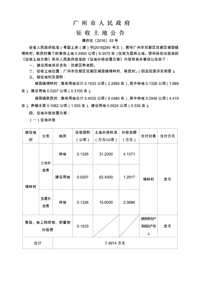 廣州市人民政府征收土地公告——穗府征〔2016〕53號