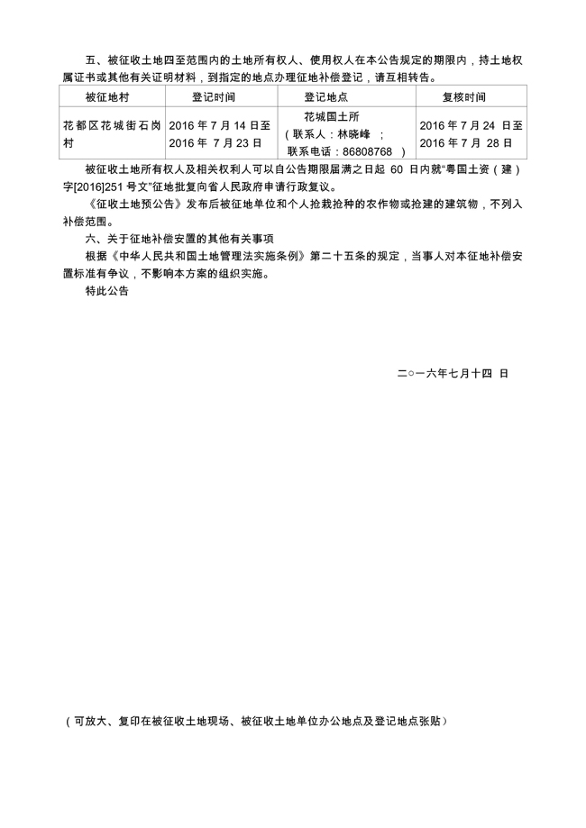 廣州市人民政府征收土地公告——穗府征〔2016〕51號