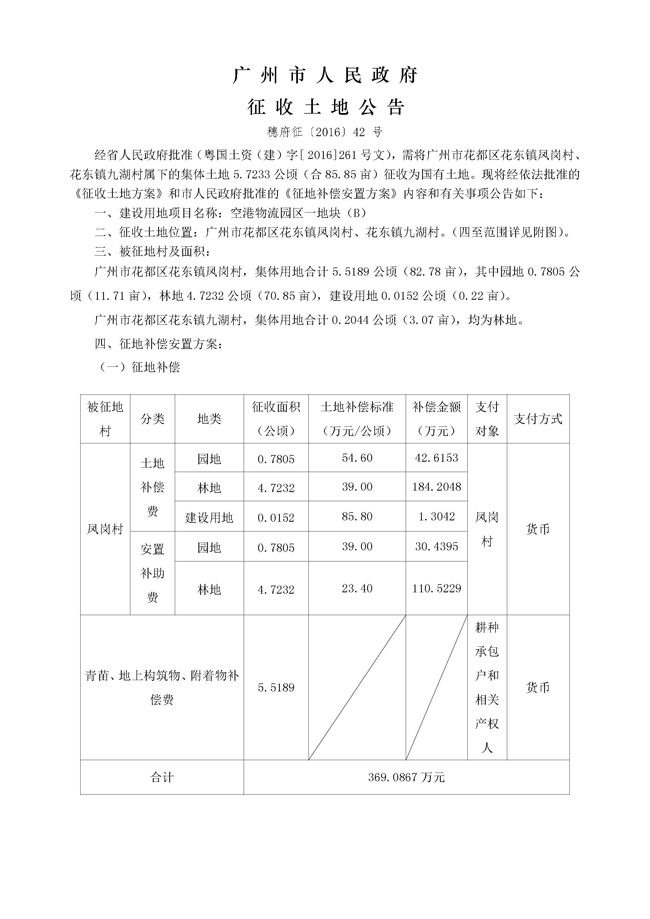 廣州市人民政府征收土地公告——穗府征〔2016〕42號