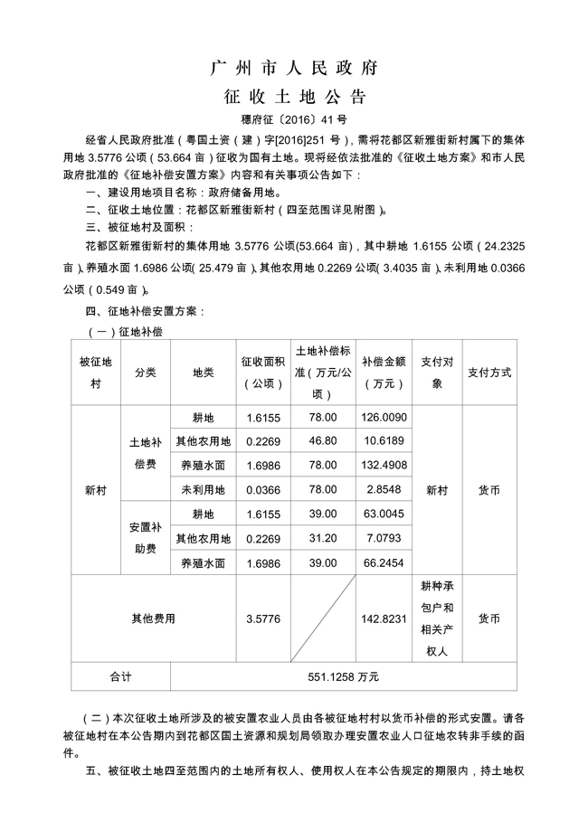廣州市人民政府征收土地公告——穗府征〔2016〕41號