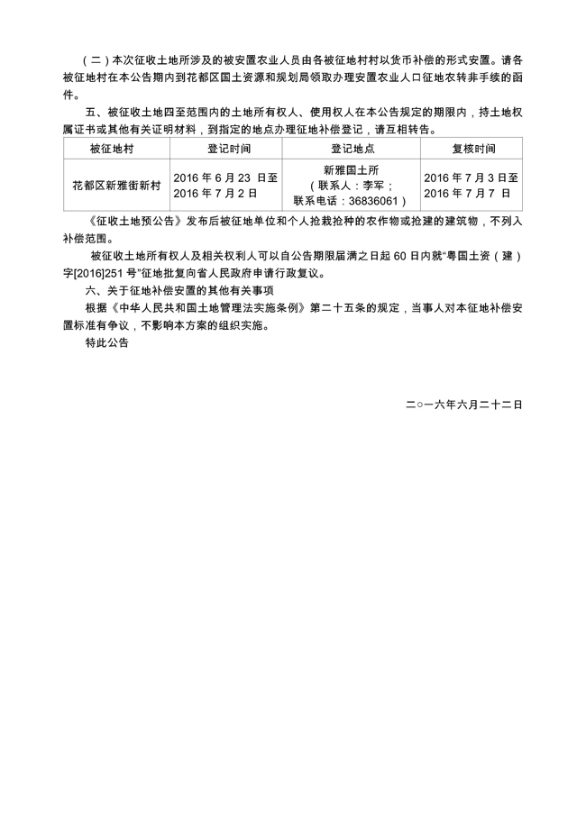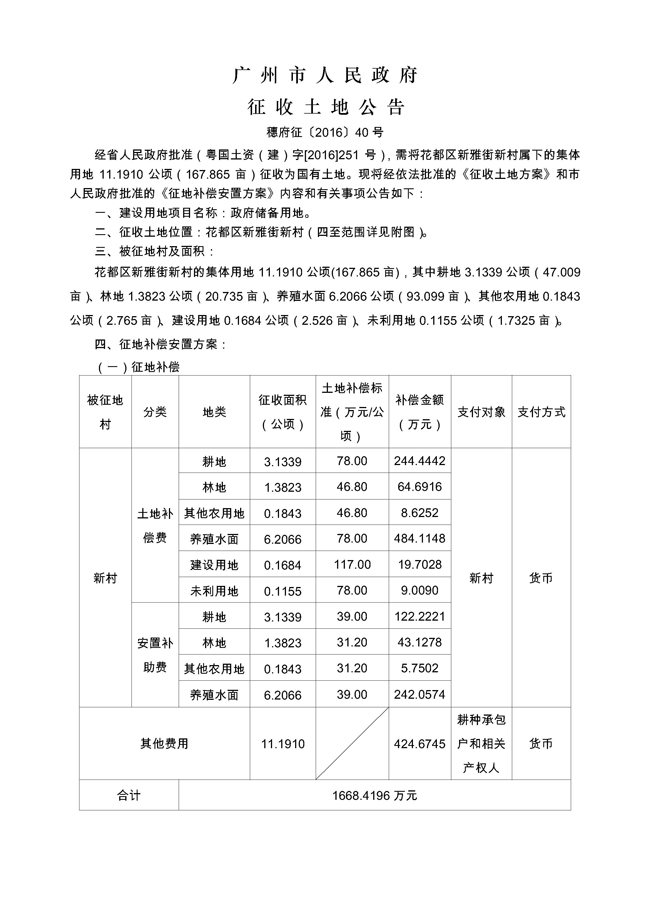 廣州市人民政府征收土地公告——穗府征〔2016〕40號