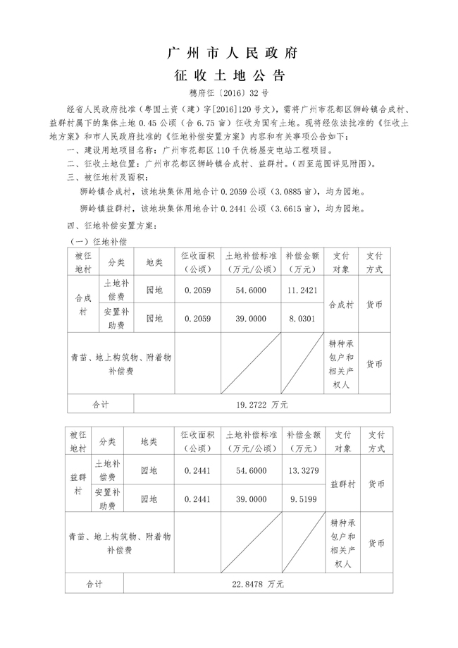 廣州市人民政府征收土地公告——穗府征〔2016〕32號(hào)