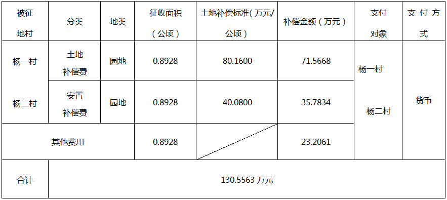 廣州市花都區花東鎮楊一村、楊二村的集體土地0.8928公頃(合13.392畝),均為園地。