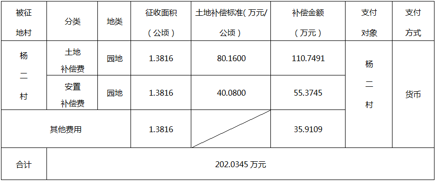廣州市花都區花東鎮楊二村的集體土地1.3816公頃(合20.724畝),均為園地。