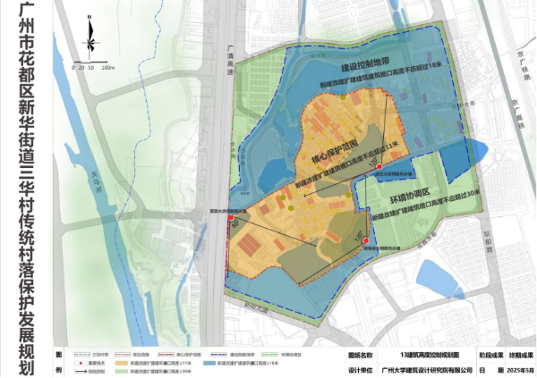 圖為三華村傳統村落保護范圍及高度控制圖,來源于《廣州市花都區新華街三華村傳統村落保護發展規劃》