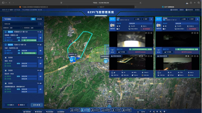 加持技防,空中監測更加嚴密。在獅嶺鎮馬嶺村和芙蓉度假區,2座無人機機巢已建成并投入使用,機巢內配備有大疆M3TD無人機,具備50分鐘續航、10公里監測半徑、三重相機系統搭載,以及厘米級定位精度和優越的防護避障能力。無人機于高火險時段在芙蓉度假區周邊進行巡航,如遇火情則到火場執行偵察、研判、畫面傳輸、照明等任務,為火災指揮與撲救提供高效有力的技術支援。同時,該局還搭建無人機服務統一管理平臺,逐步開發無人機航線規劃、飛控、影像數據存儲管理、數據成果共享等功能,為后續新增無人機和拓寬應用場景奠定了技術保障基礎。