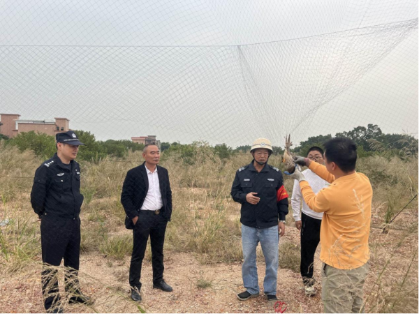花都區分局聯合森林公安開展巡查中發現捕鳥網并現場拆除
